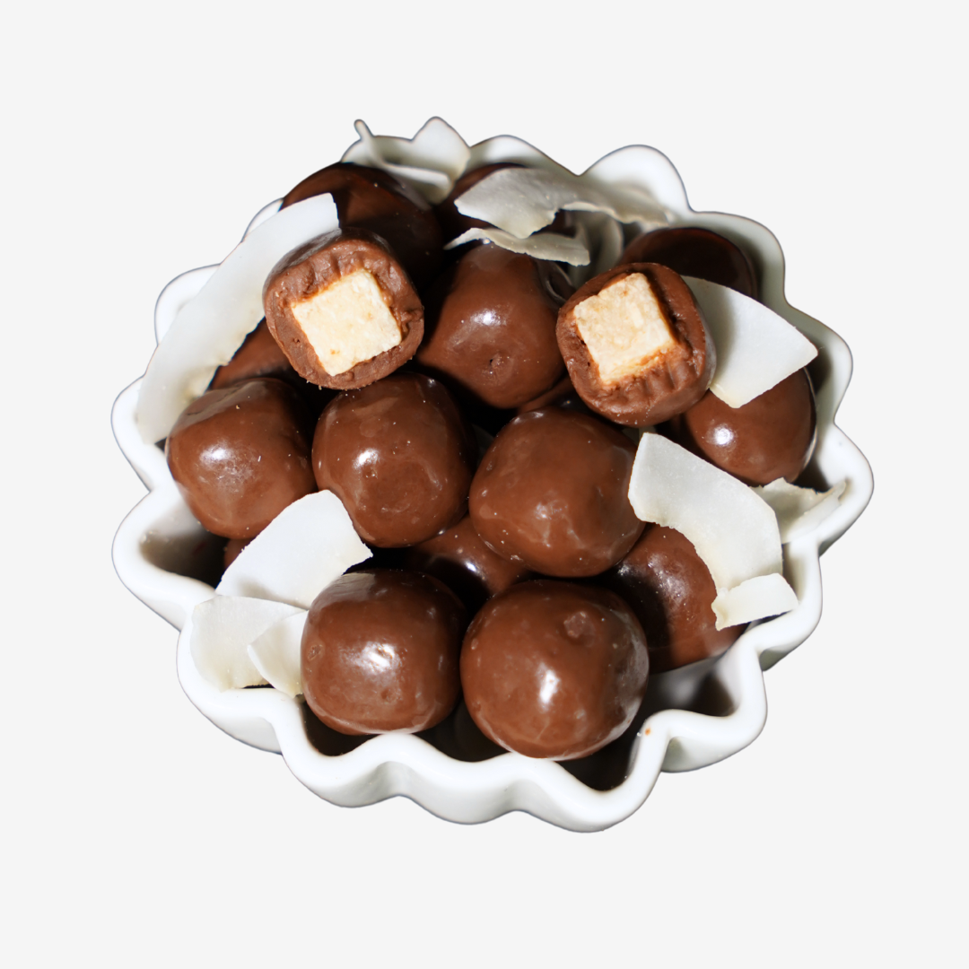 • Coco seleccionado y chocolate de leche de alta calidad.
