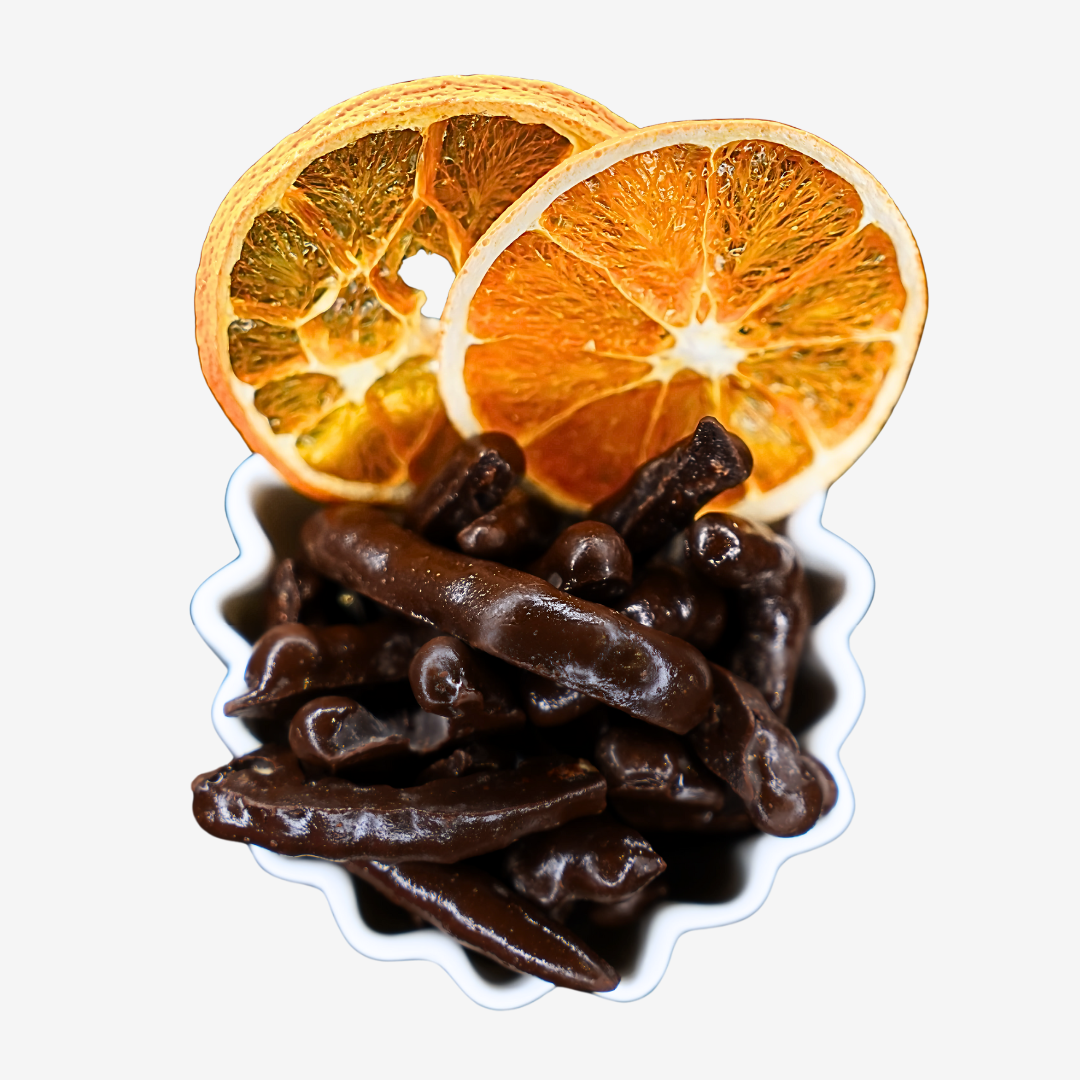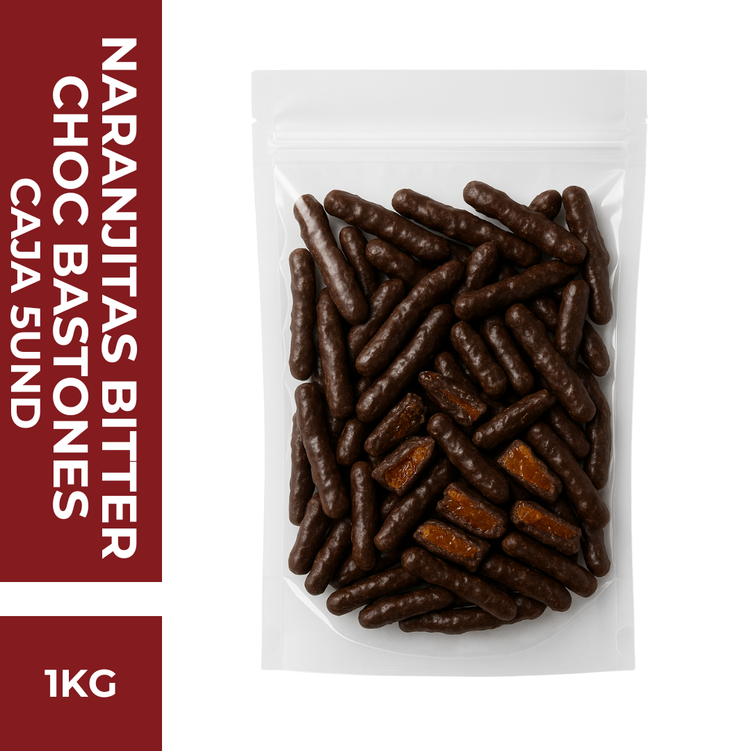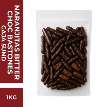 Nuestras Naranjitas Bitter Bastones (60% cacao) combinan la frescura y acidez natural de la naranja con la profundidad del chocolate bitter, logrando un equilibrio perfecto entre dulzura, amargor y notas frutales. Un snack gourmet ideal para quienes disfrutan sabores intensos y refinados.