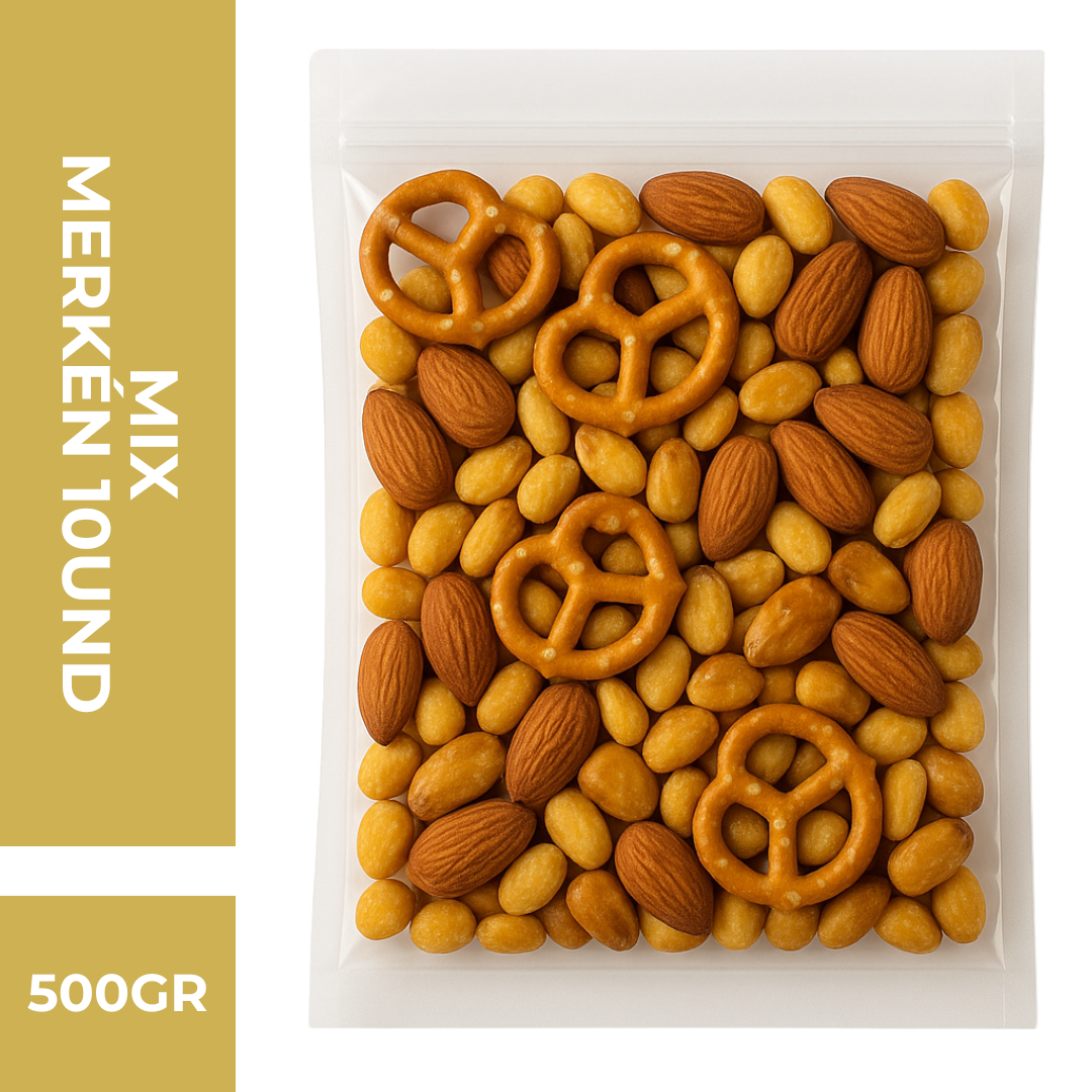 Nuestro Mix  Merkén . Una mezcla equilibrada de frutos secos, semillas y snacks tostados, realzada con un toque justo de Merkén.