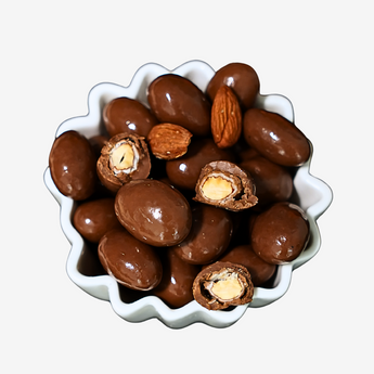 Nuestras Almendras con Chocolate de Leche (26% cacao) logran el equilibrio perfecto entre la textura firme de la almendra y la suavidad cremosa del chocolate. Un snack gourmet pensado para disfrutar en cualquier momento del día, ya sea como colación, acompañamiento o detalle dulce.